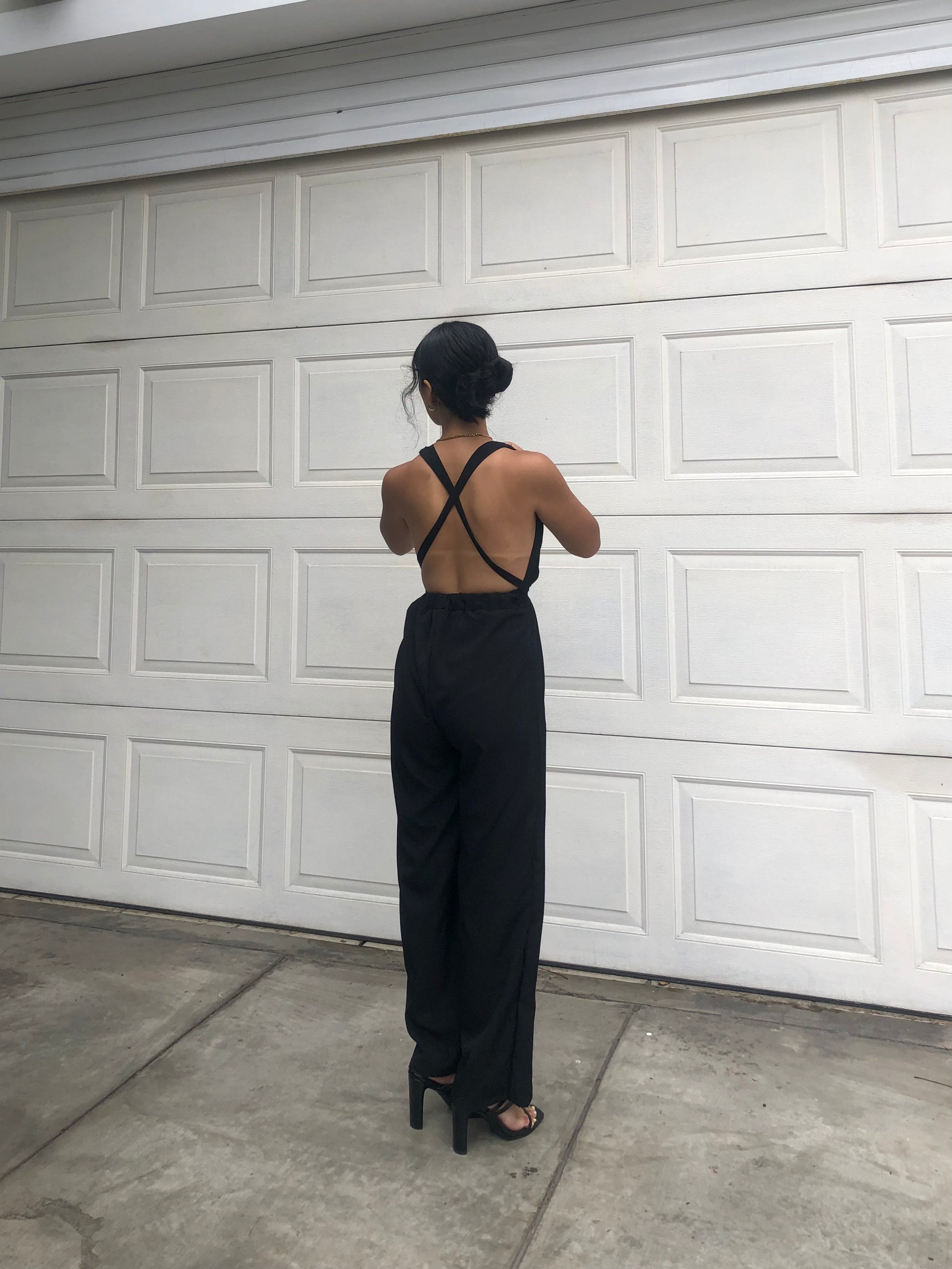 Enterizo con abertura en la espalda, puedes ajustar las tiras como desees. Pantalón del enterizo tipo PALAZZO.
